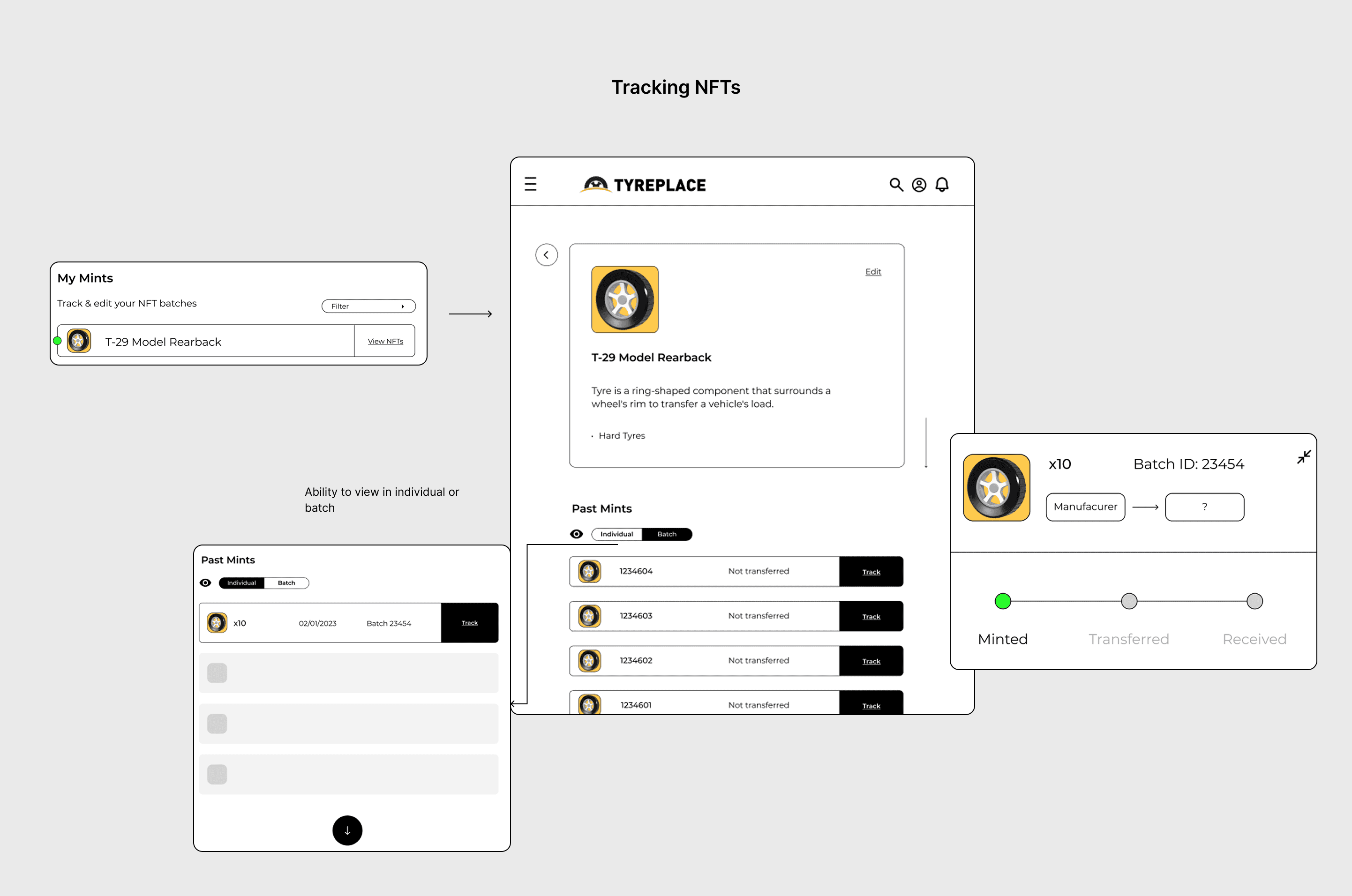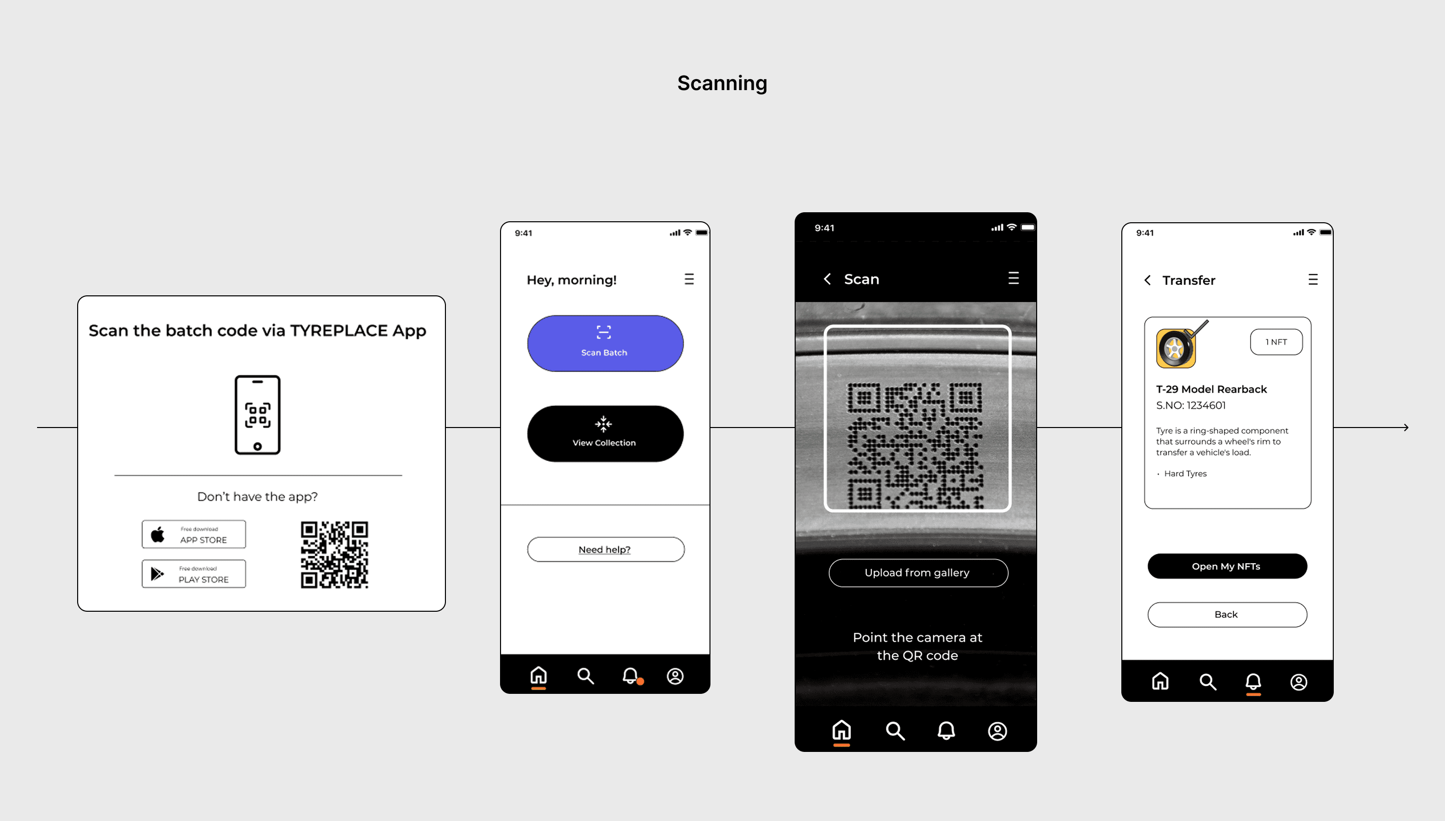 Retailer: This user acts as the bridge between the factory and the final owner. I designed their flow to be an inventory and verification tool. They need to quickly scan a tire to confirm origin and initiate the transfer of ownership to their customer.